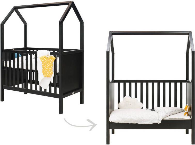 Bopita Meegroei Ledikant My First House Mat Zwart